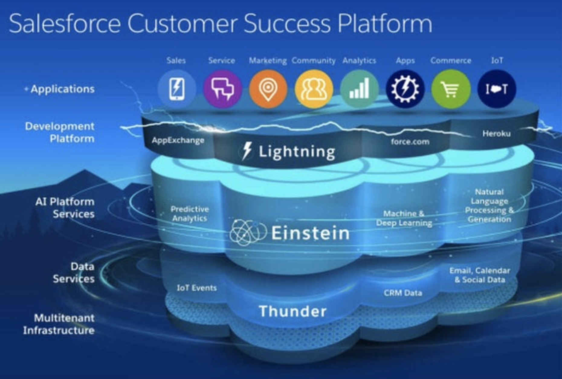 Then Companies can enhance capabilities within these systems using AppExchange partner solutions, but using Salesforce at its core. With this stack the customer will be represented as a single record that lives within Salesforce, instead of having 4 different records that need to be matched across separate systems.