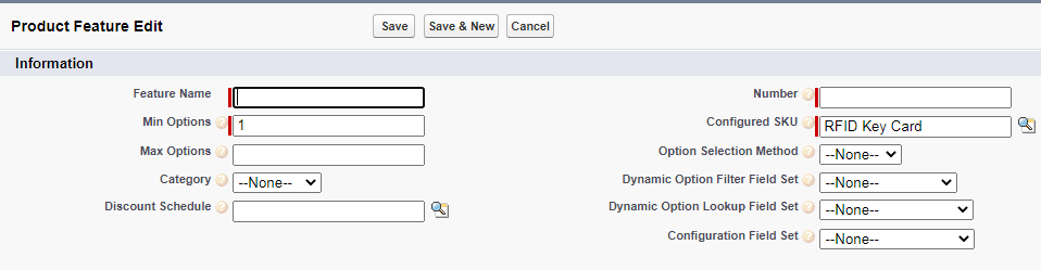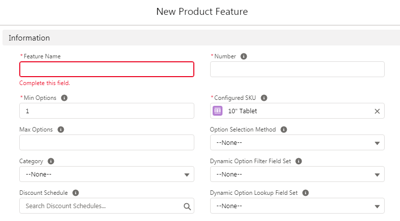1. Select the Product you will create the Feature for. Under “Related”, click for “New” in the “Option” section.