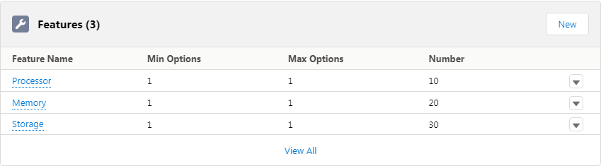 Select the Product you will create the Feature for. Under “Related”, click for “New” in the “Features” section.