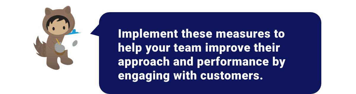 Using Salesforce for this purpose gives the opportunity to keep track of all call outcomes, enter a virtuous improvement cycle and get real-time insights on the overall call center performance. Recording and monitoring calls won’t do it on its own, if managers don’t use them for training and updating their teams. Make practical and operational scripts for the agents, emphasize quality, encourage self-assessment, and empower your supervisors with call monitoring features on software like Salesforce. Implement these measures to help your team improve their approach and performance by engaging with customers.