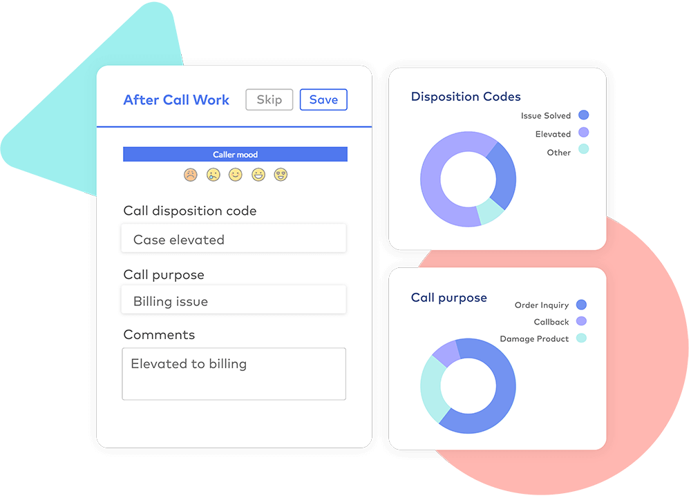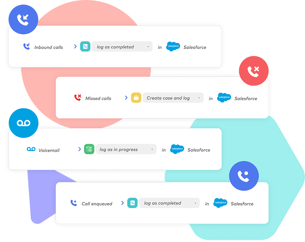 Empower agents with powerful in-call controls without leaving Salesforce: hold and transfer capabilities, add case comments and disposition codes, apply call tags and sentiment tracking, assign calls to new or existing cases, create follow-up tasks automatically, leverage automated case workflows, and sync all call data to Salesforce in real-time. Zero manual data entry required with native Service Cloud integration.